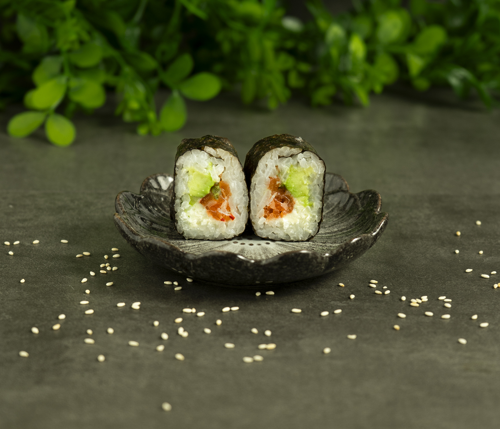 Maki. tartar de salmon, palta y queso philadelphia.